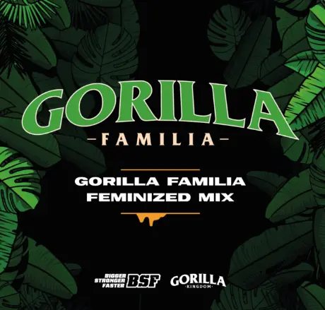 Mix conformado por cuatro cruzas de la “Bestia de California” Gorilla Glue #4 con variedades clásicas de todos los tiempos: Gorilla White Gorilla Rainbow Gorilla Ghost Gorilla Banana
