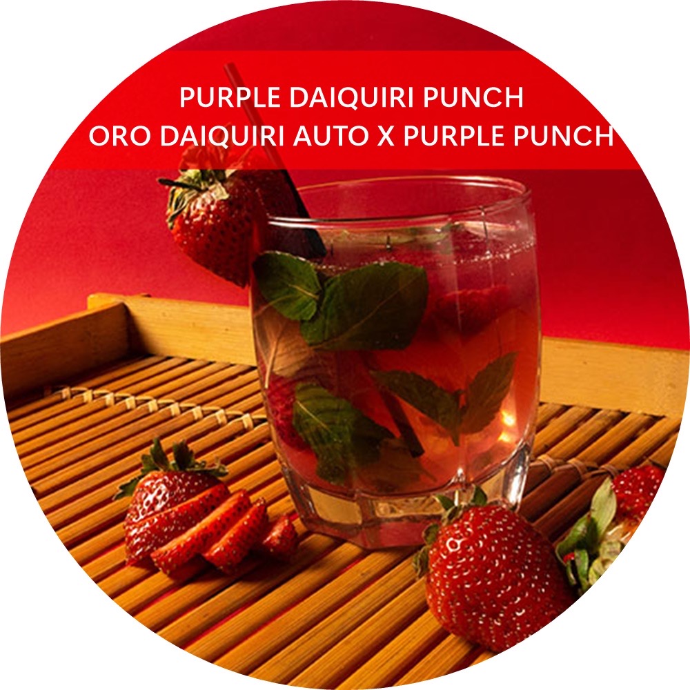 Esta variedad presenta un perfil de sabor muy interesante y complejo. Puedes esperar notas dulces y afrutadas, con matices que recuerdan a bayas moradas, uvas y notas cítricas. La influencia de Purple Punch aporta un toque de dulzura y notas terrosas, mientras que la Daiquiri puede aportar matices cítricos y refrescantes, creando un perfil aromático equilibrado y agradable.